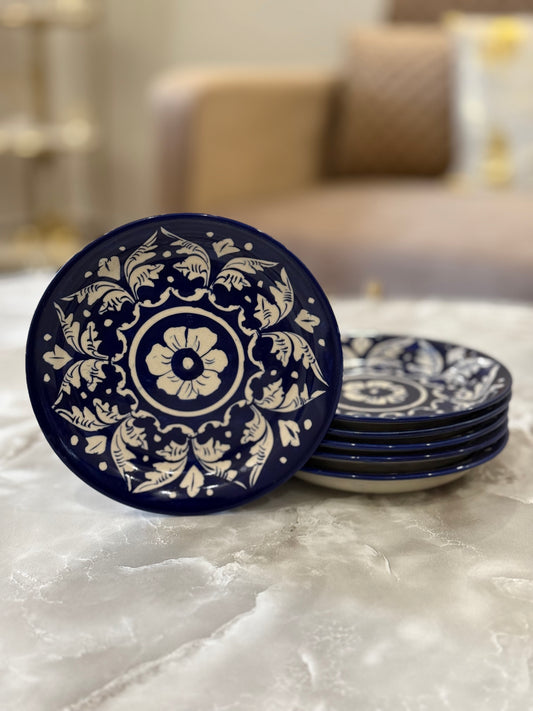 Handmade Blue Pottery Small Plates - 6 pieces
